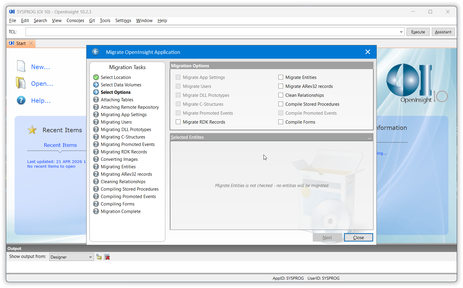 Wanted to start from scratch, so I deleted app in OI10. When I know try to transfer the app again, a bunch of options are not available, see screenshot. I tried un-installing OI10 and re-installing. These options were available when I first did the transfer.